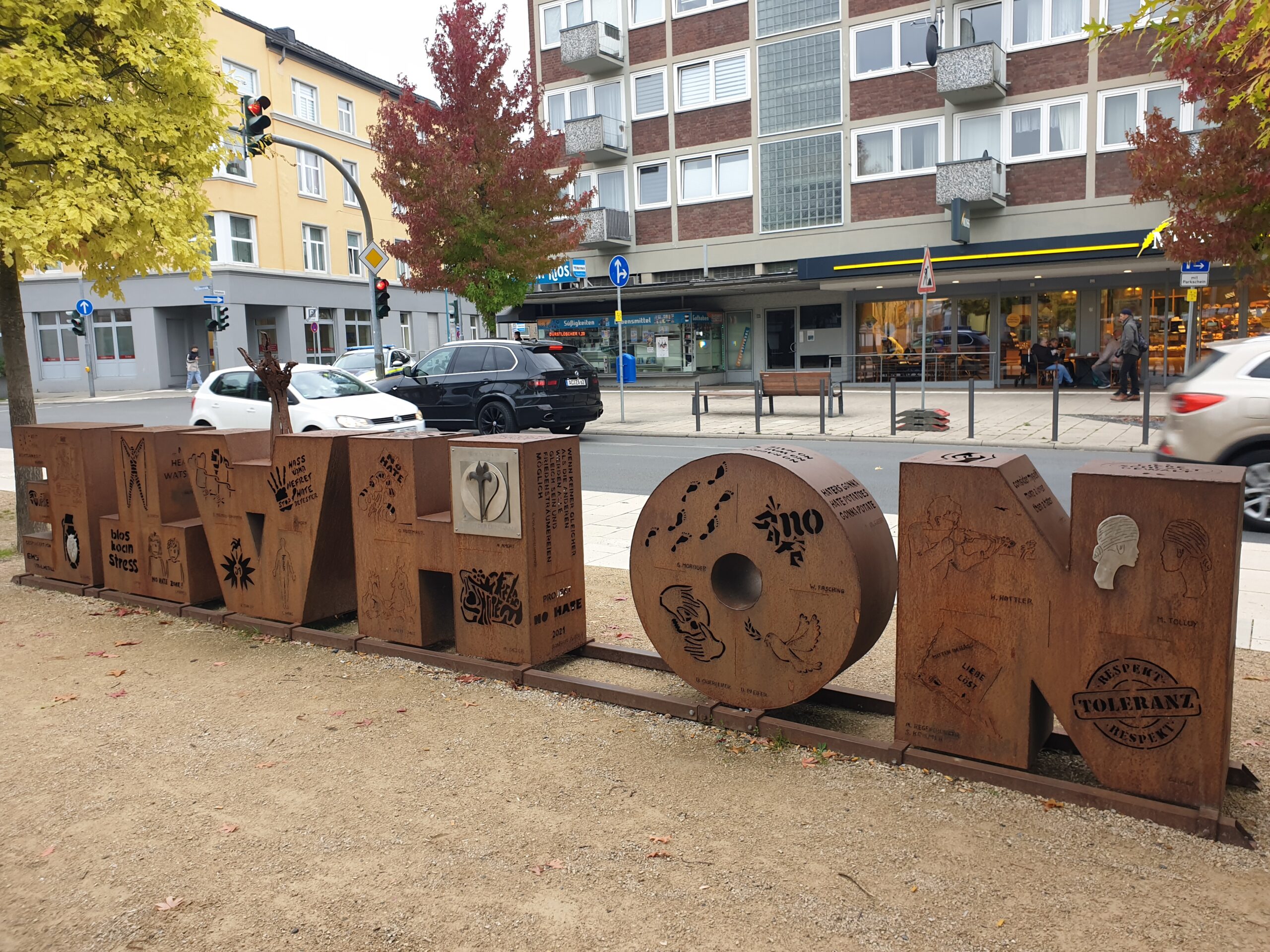 In Stolberg wurde im Rahmen der Kunstausstellung „MetAlles“ zu zwei Aktionstagen eingeladen, in deren Zentrum das Wanderkunstwerk „No Hate“ der Künstlerinnen Alexandra Rangger und Bernhard Witsch stand. Auf dem Kunstwerk sind zahlreiche Botschaften rund um Vielfalt, Toleranz und gegen Hetze eingearbeitet. Die Ausstellung war an verschiedenen Orten in Stolberg präsent, wie z.B. dem Zinkhütter Hof. Das Kunstwerk „No Hate“ stand mitten in Stolberg am Bastinsweiher, einer der Verkehrsadern der Stolberger Innenstadt. Die Botschaft ist eindeutig: Stolberg setzt sich für Vielfalt und gegen jede Form von Diskriminierung ein.